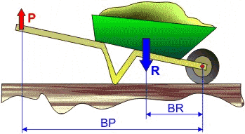 La palanca de segundo grado permite situar la carga (R, resistencia) entre el fulcro y el esfuerzo (P, potencia). Con esto se consigue que el brazo de potencia siempre será mayor que el de resistencia (BP>BR) y, en consecuencia, el esfuerzo menor que la carga (P<R). Este tipo de palancas siempre tiene ganancia mecánica.
