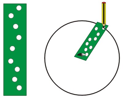 Con una máquina de taladrar folios haremos nueve agujeros en una tira de cartulina. Fijaremos un extremo con una chincheta y, con un lápiz, iremos dibujando las "órbitas". |
